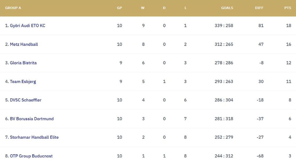 Celelalte jocuri din etapa 10 a Grupei A: Podgorica – Dortmund 22-25, Metz – Storhamar 29-27, Gyor – Debrecen 30-31.