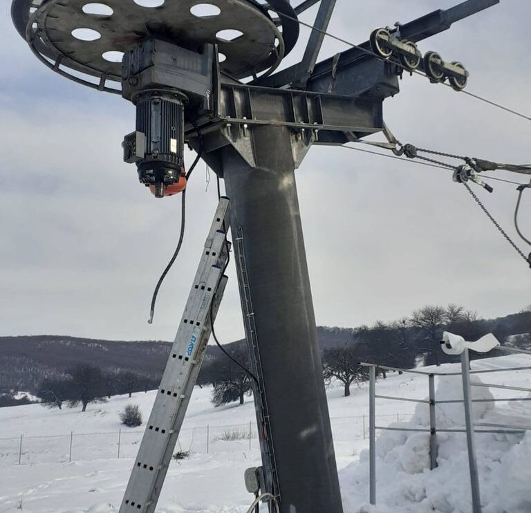 Din acest motiv, a fost nevoie să apelăm nu doar la echipe locale, ci inclusiv la specialiști din Miercurea Ciuc, cu experiență în instalații de transport pe cablu pentru domeniul schiabil. Aceștia au livrat echipamentele necesare pentru demontare și sunt implicați direct în procesul de repunere în funcțiune a teleschiului, un pas important pentru rezolvarea problemelor apărute.