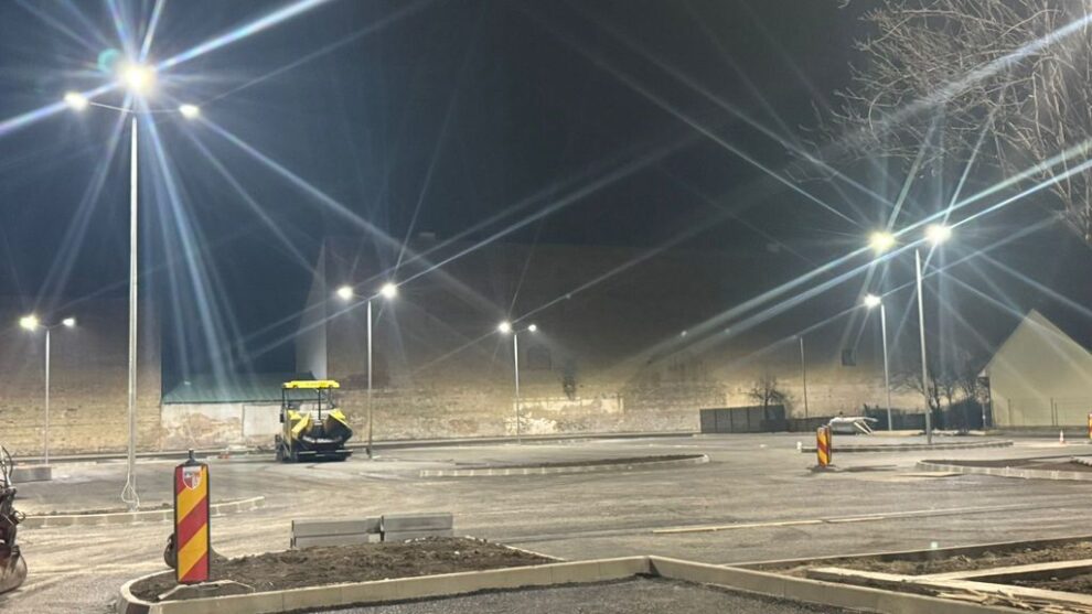Lucrările de amenajare a parcării de pe strada Bistricioarei au intrat în linie dreaptă. S-au făcut inclusiv probele de lumină și de umbrire.