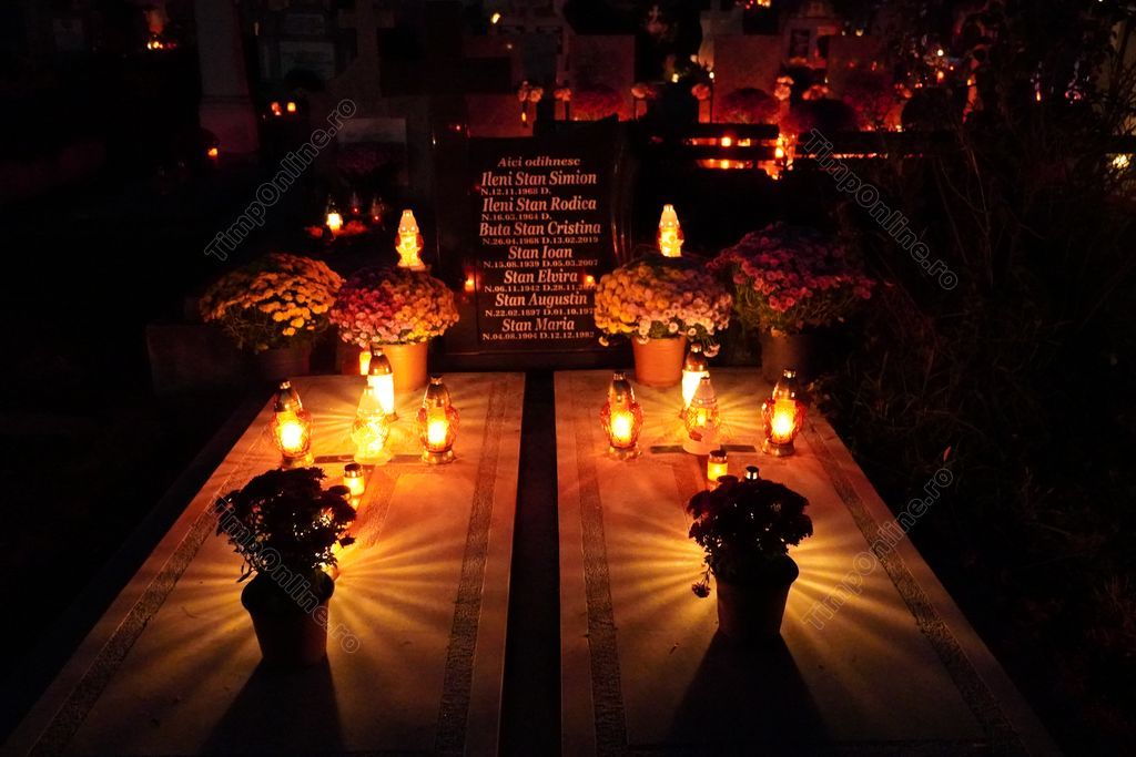 Cimitirele s-au umplut de lumină în această seară în care oamenii au dus la mormintele celor dragi crizanteme, candele și lumânări, semn că nu i-au uitat pe cei plecați din această lume într-o alta mai bună în care nu mai este nici durere și nici întristare.
