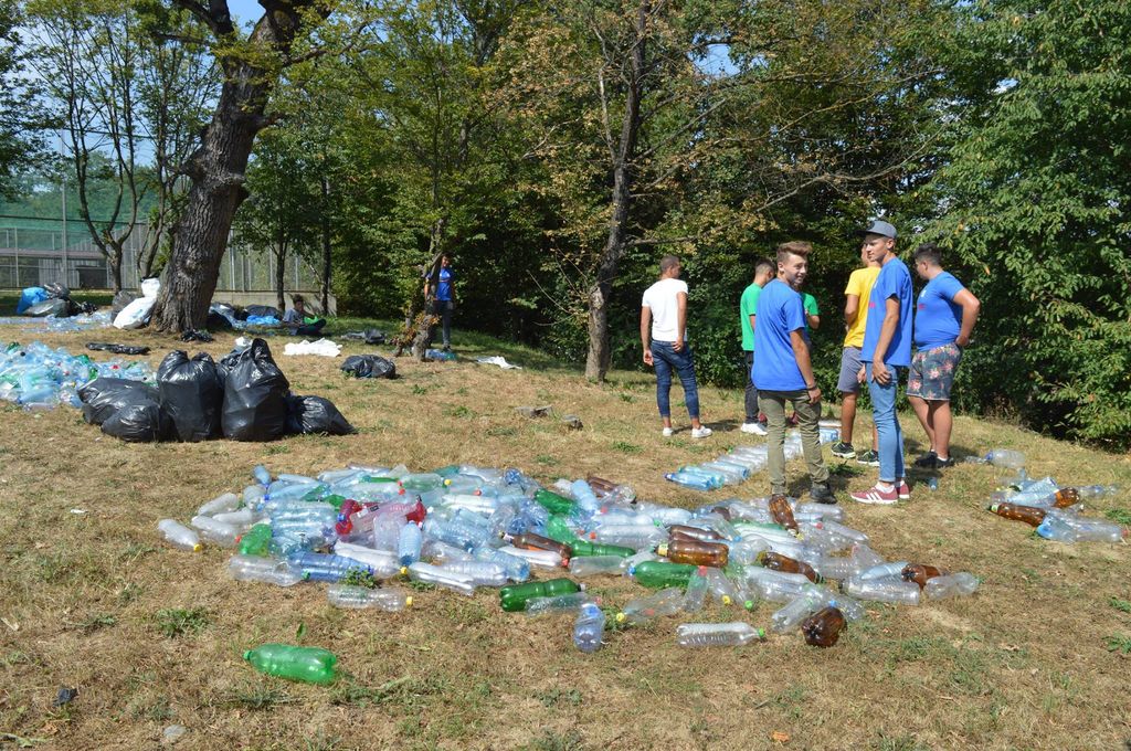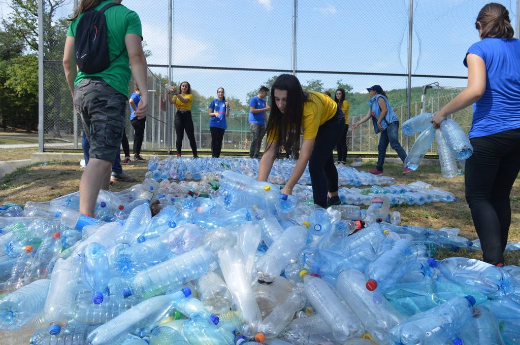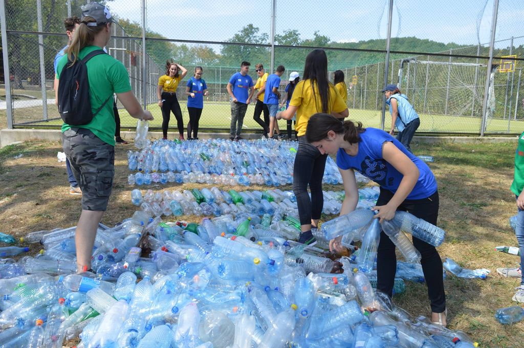 (FOTO) Zi creativă pentru voluntarii Creative Ideas of Youth People to Society, care au participat la o ecologizare selectivă a deșeurilor în Pădurea Schulerwald și la crearea celei mai mari machete din PET-uri realizate în Bistrița.