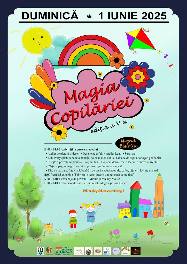 Cu ocazia Zilei Internaționale a Copilului, 1 Iunie, cei mici și cei mari sunt așteptați la Muzeul Bistrița între orele 10.00 și 14.00 pentru a sărbători împreună bucuria copilăriei printr-o serie de activități creative, surprize și multă distracție.