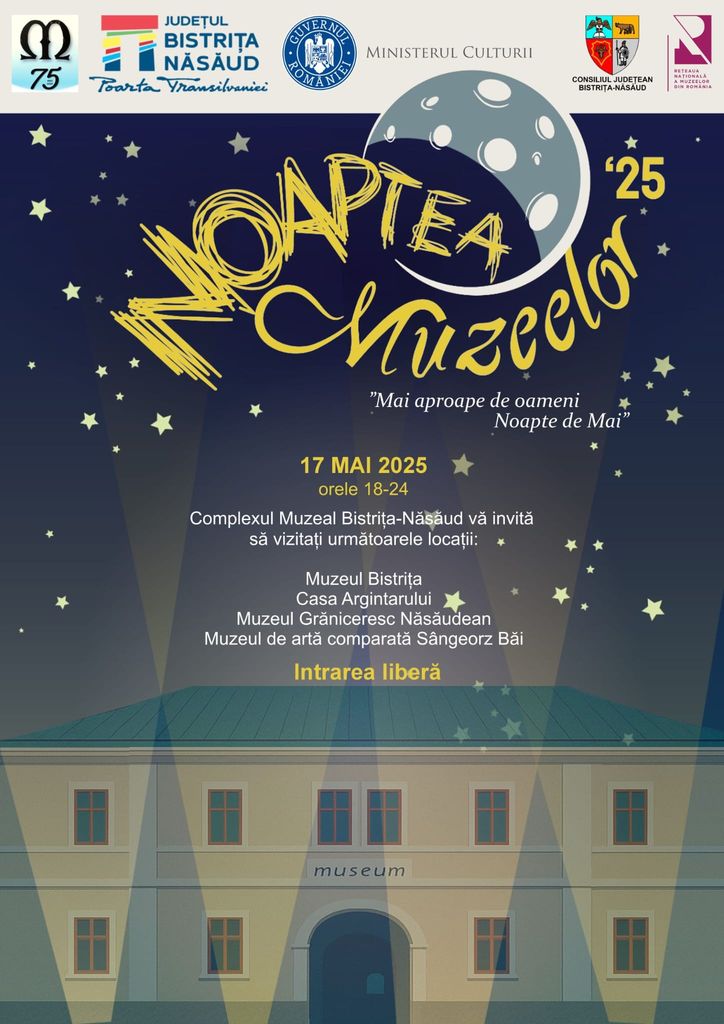 Complexul Muzeal Bistrița-Năsăud organizează și anul acesta evenimentul Noaptea Muzeelor, desfășurat sub motto-ul ”Mai aproape de oameni într-o noapte de mai”.