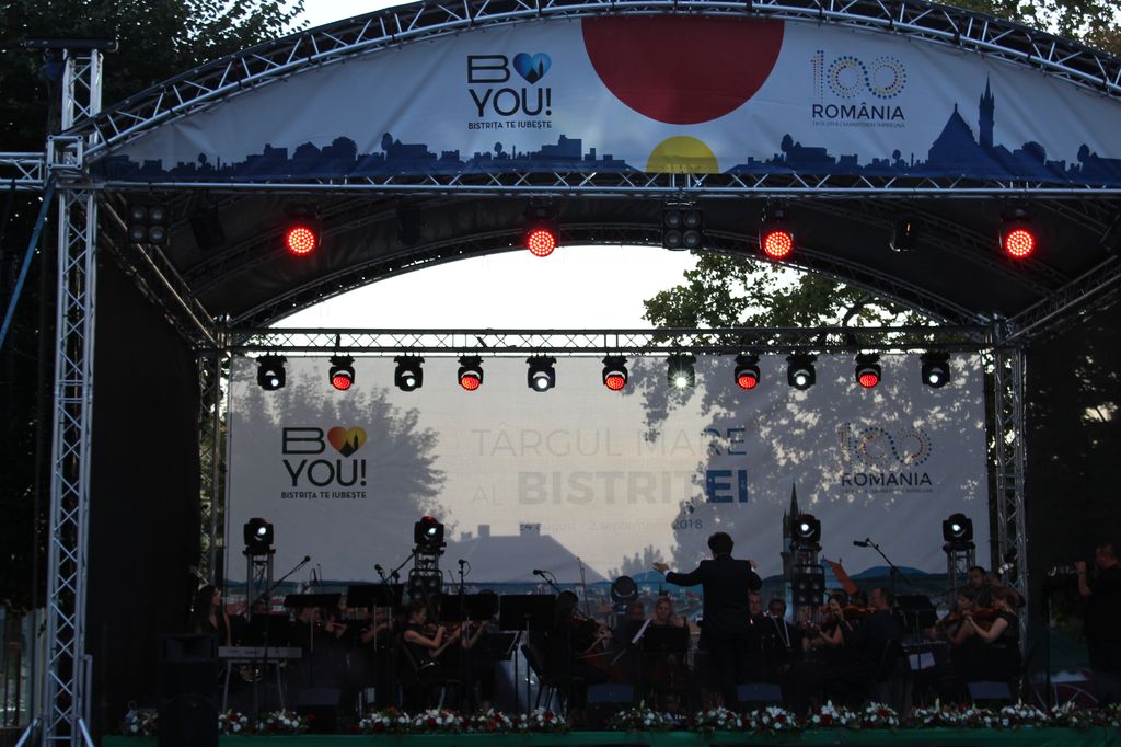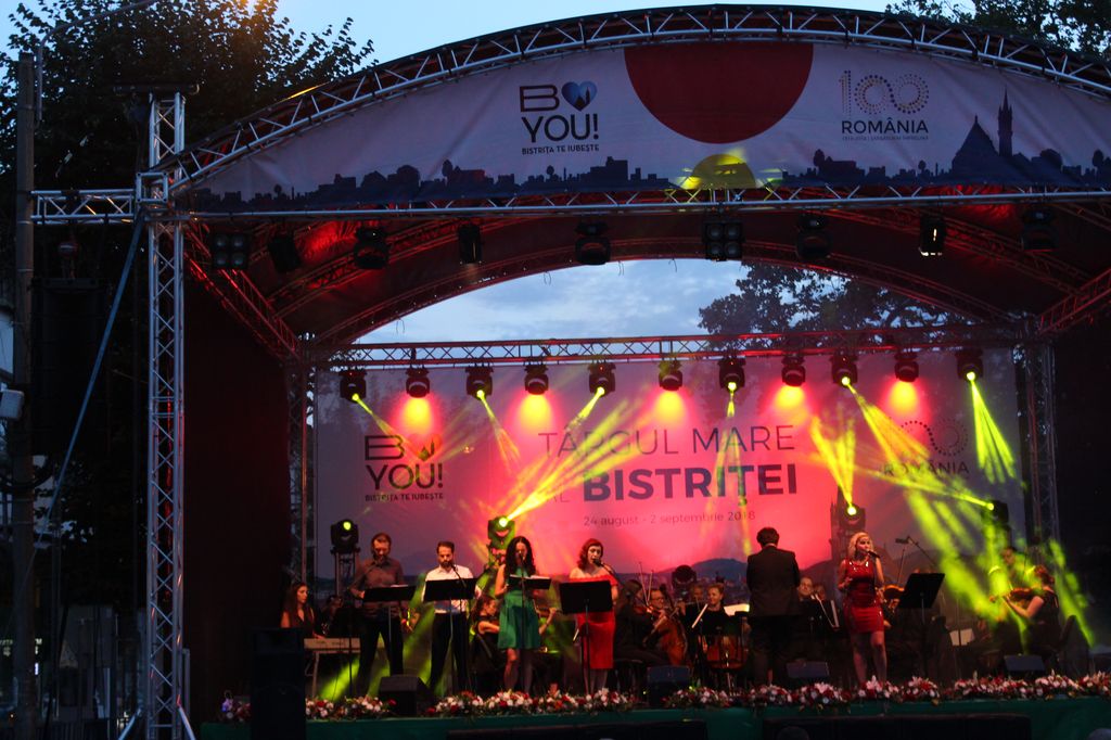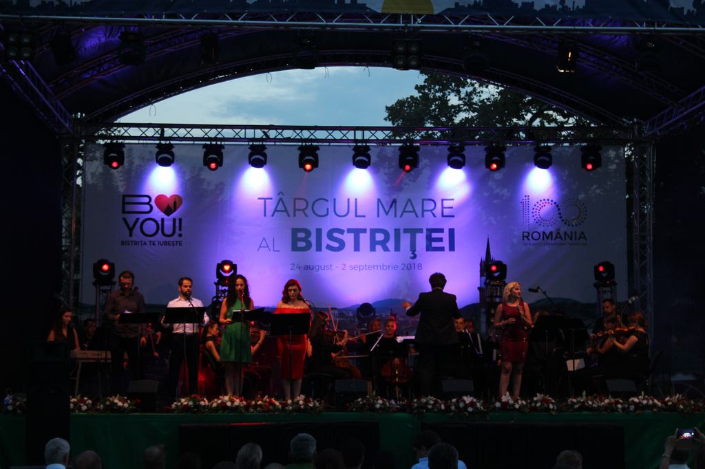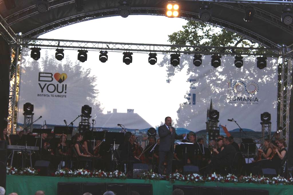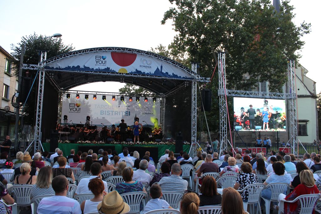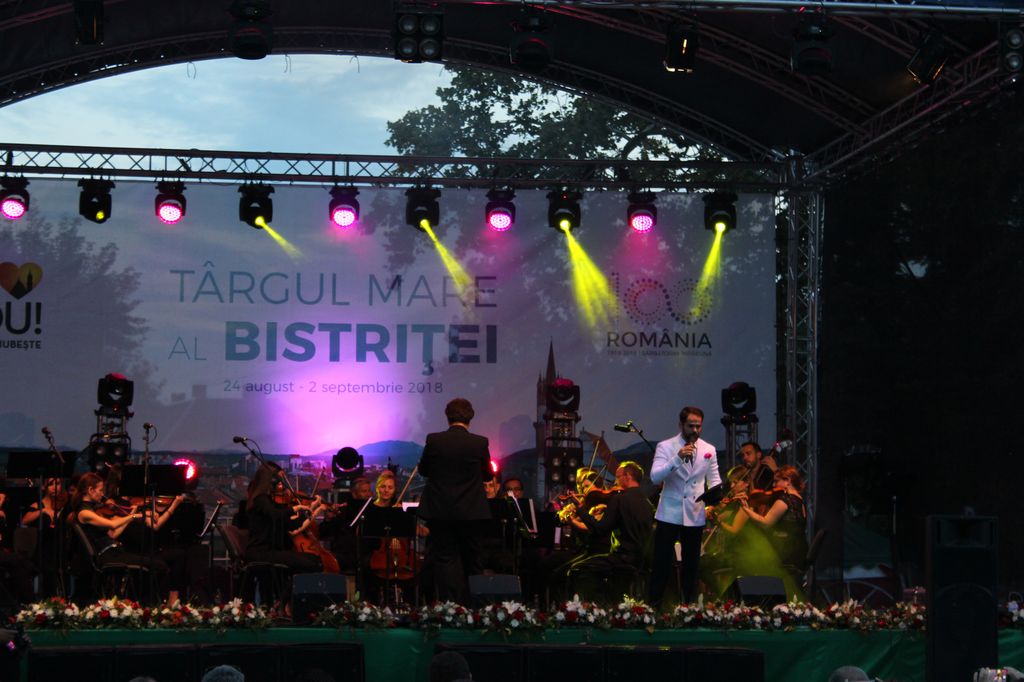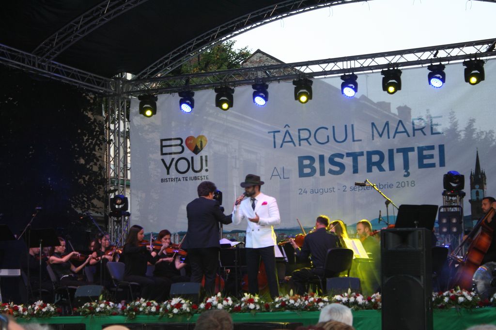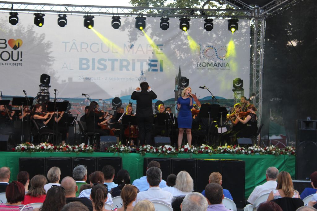 (FOTO-VIDEO) În a doua seară a Târgului Mare al Bistriței, sâmbătă 25 august, în centrul istoric a avut loc un concert susținut de Opera Group Project, orchestră simfonică formată din muzicieni de la Opera Națională și Filarmonica Transilvania din Cluj-Napoca și dirijată de Flaviu Mogoșan. Soliști, Mădălina Danciu și Tudor Bărbos.