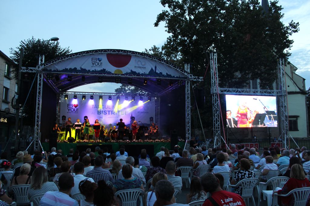 La concert au asistat, alături de primarul Ovidiu Crețu, invitații din străinătate veniți la Târgul Mare al Bistriței.