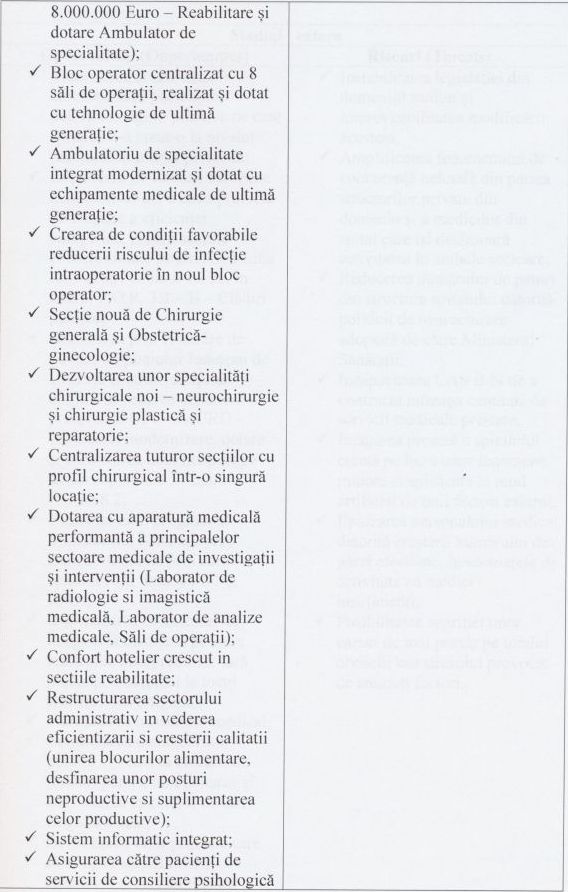 • Sunt sigura ca se va realiza si acest proiect. Oricum tb sa recunoaștem ca cel puțin in sănătate s au învestit banii cu folos. Sunt la Cluj spitale care nu sunt dotate si modernizate ca si al nostru. Daca se realizează investițiile pe ATI si radiologie pt oncologie suntem dotați cu tot ce tb. Succes dle Director si multe realizări.