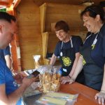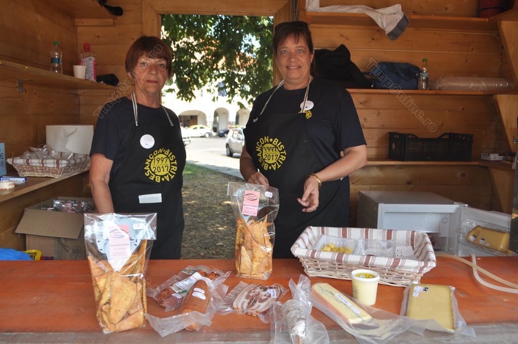 Oaspeţii din Besançon au ocupat două din căsuţele aflate în centru, în timp ce alături, producătorii locali şi-au expus marfa la locul lor obişnuit. Francezii au profitat de vecinătate ca să guste din bunătăţile noastre despre care au spus că sunt minunate, mai precis pâinea făcută în cuptor cu lemne, brânza de la Ruştior, ţuica de la Salva, legumele şi fructele noastre.