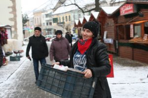 Sâmbătă s-au vândut bine şi murăturile făcute de Florentin Bodiu din legumele cultivate chiar de el la Dumitra, brânza proaspătă a adusă de la Ruştior de Grigore Creţa, mierea Mariei Hiticaş şi a lui Grigore Cotul, dar şi uleiul presat la rece făcut de Dinu Pleşa din Dipşa. Cei carea u trecut prin Piaţa Centrakă au putut bea şi un vin cald pregătit de Florentin Bodiu.