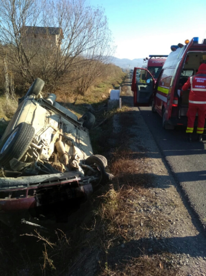 Mașină răsturnată la Cepari. Trei persoane au ajuns la spital (FOTO)