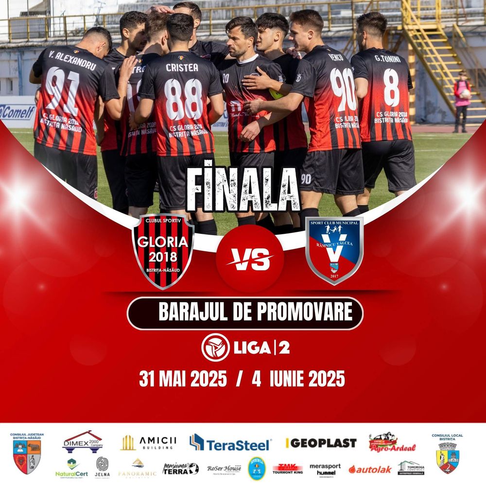”Poveștile extraordinare se scriu în jurul unor echipe cu istorie! Anul acesta a venit rândul Gloriei să o scrie! Am așteptat, am crezut, am luptat și am ajuns în finală! Împreună cu voi, pas cu pas am demonstrat că suntem de neînvins! Suntem concentrați, determinați și pregătiți, dar… avem nevoie si de voi, în tribune! Cât mai mulți! Haideți să umplem tribunele pentru a-i ajuta pe băieți să ia o opțiune serioasă pentru promovarea în Liga 2! Bistrița, hai la meci!”, este mesajul clubului Gloria.