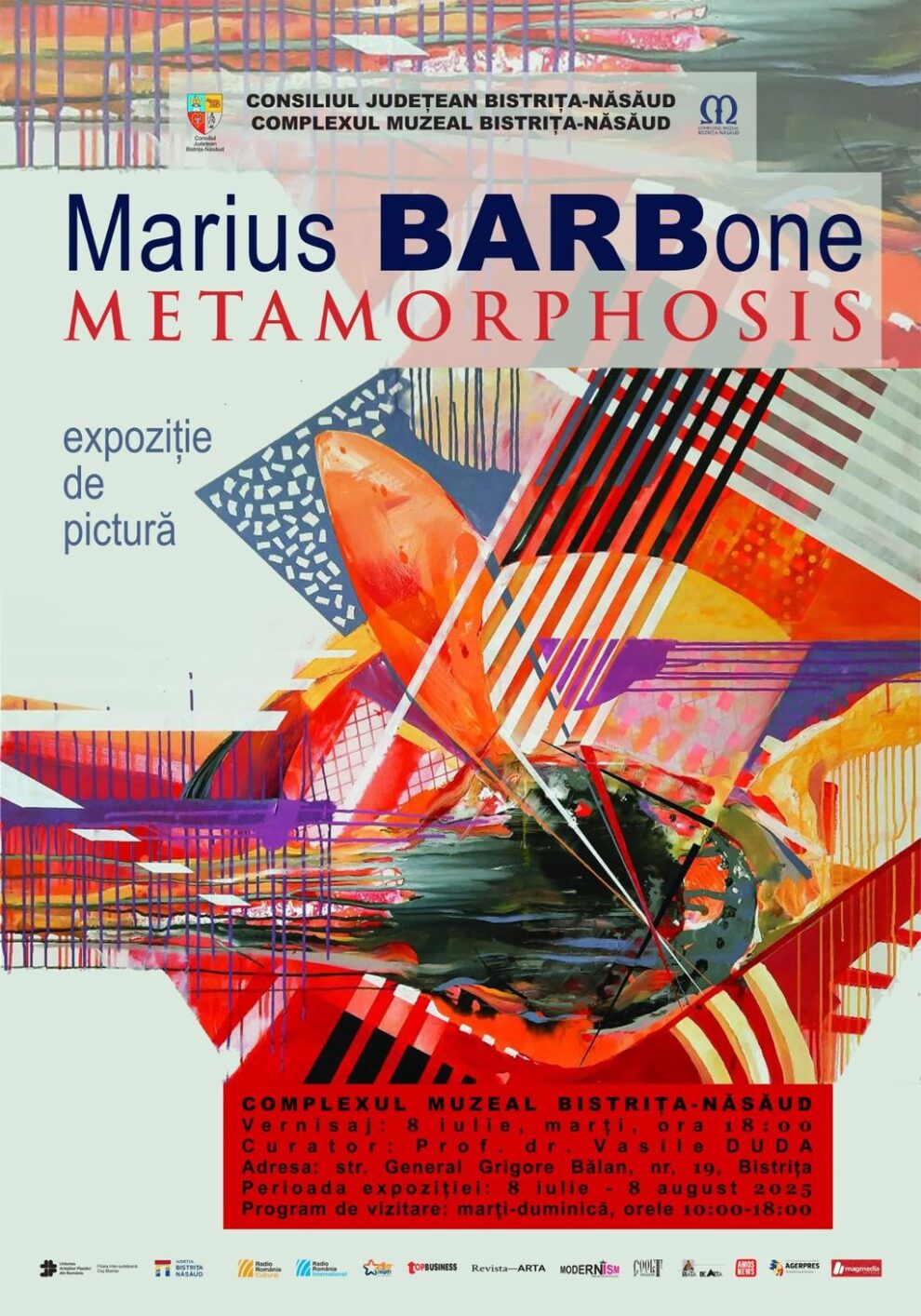 Expoziția de pictură ”Metamorphosis”, semnată de artistul Marius Barbone, va avea vernisajul marți, la Complexul Muzeal Bistrița-Năsăud, începând cu ora 18.00.