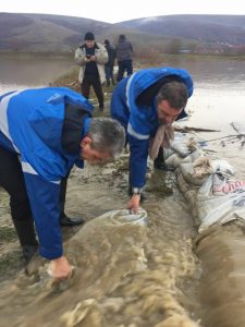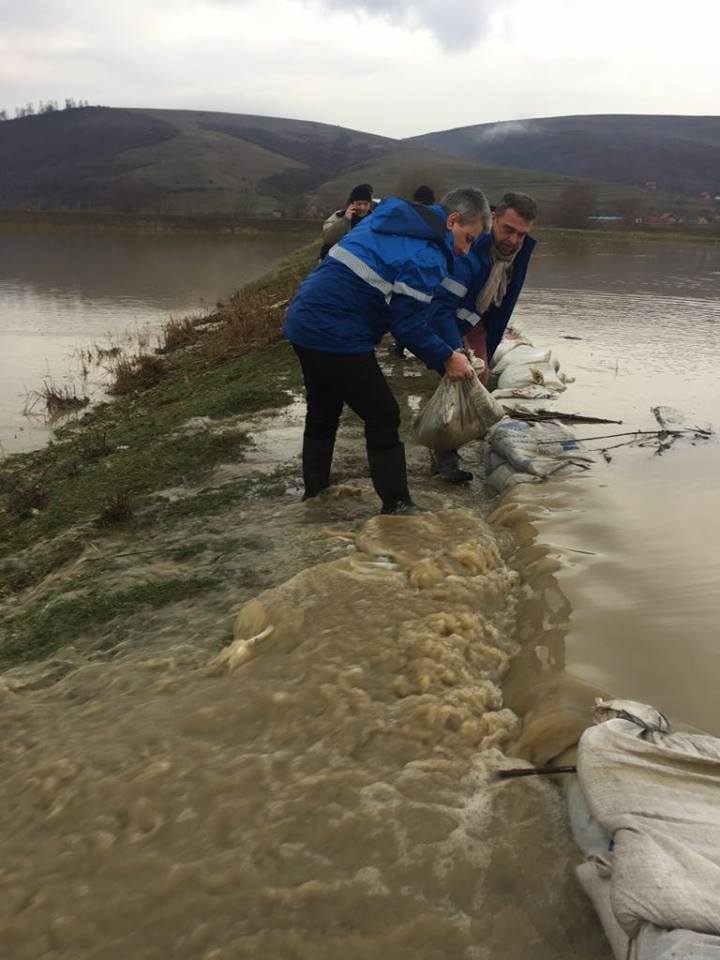 Ministrul Ioan Deneş şi-a început ziua cărând saci cu nisip (FOTO)