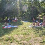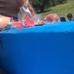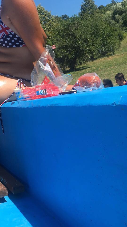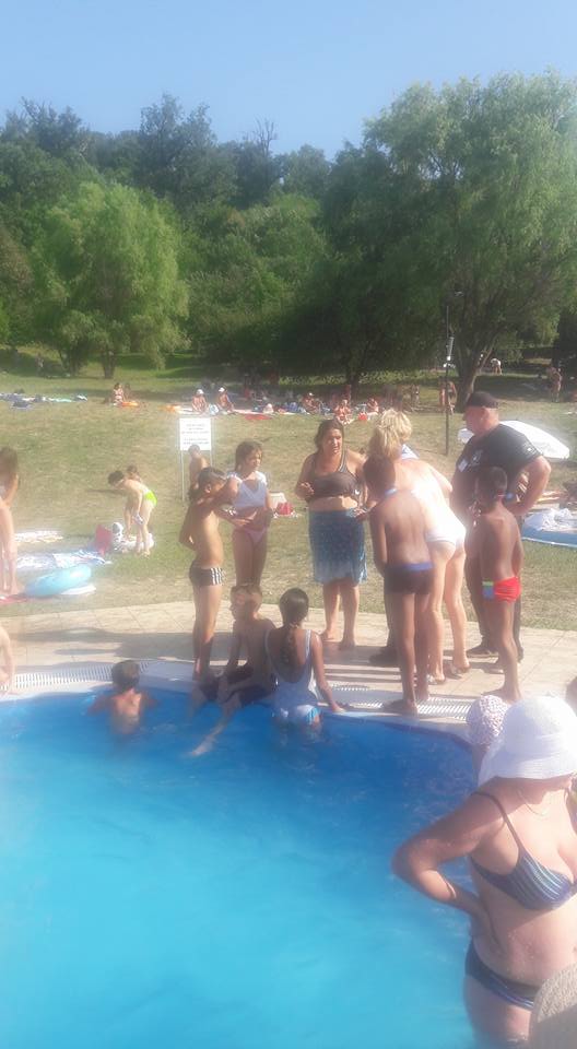 Din fotografiile postate de Dana Humurianu reiese că unii dintre romi au intrat îmbrăcaţi în ştrand, fără ca cineva să îi deranjeze. Alţii au stat cu ruda de salam la marginea bazinului.