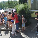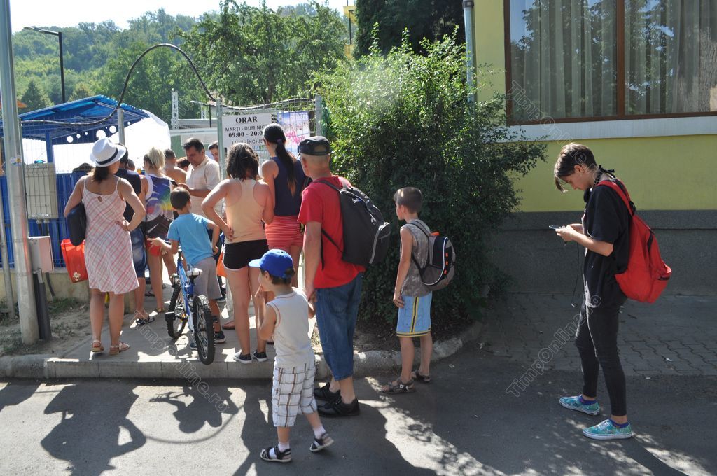 În primul rând, nu există suficiente locuri de parcare pe lângă râul Bistriţa, la un moment dat fâşia de asfalt terminându-se. La intrare s-a creat aglomeraţie, singura casieriţă făcând cu greu faţă valului de doritori. Ca să îşi găsească un loc unde să stea la plajă, oamenii au urcat un dâmb numai bun de rupt curelele la sandale sau de făcut o luxaţie dacă eşti în şlapi. Constructorul care a încasat un milion de euro nu s-a deranjat să facă nişte trepte. Peste tot, buruieni sau bucăţi mari de pământ, mai precis bolovani.