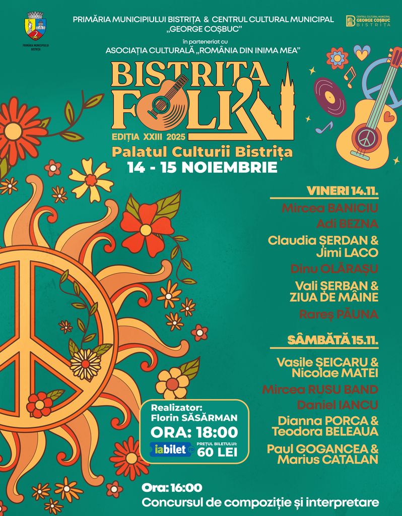 Festivalul Concurs Bistrița Folk ajunge anul acesta la cea de a XXIII-a ediție și se desfășoară în perioada 14-15 noiembrie la Palatul Culturii.