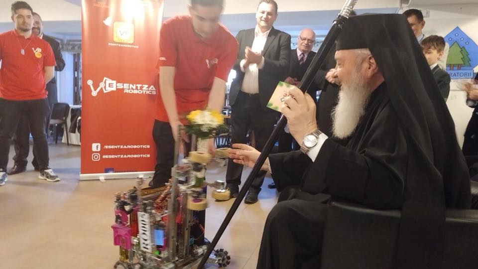 Dupa terminarea slujbei, echipa Esentza Robotics de la Colegiul National ”Petru Rareș” a organizat o demonstrație la subsolul bisericii. Aceștia au prezentat Robotul H3len cu care au participat la editia de anul acesta a First Tech Challenge Romania, cea mai mare competitie pentru licee la nivel național. În cadrul acestei competitii au obținut locul II și au fost distinși cu premiul Rockwell Collins Innovate Award. Membrii echipei i-au aratat IPS Andrei abilitățile robotului, evocând importanța roboticii în societatea contemporană.