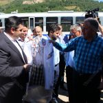 La Rodna, ministrul Transporturilor a primit cadou o traistă cu un clop cu pană de păun în miniatură, dar și o ie pe care președintele CJ Radu Moldovan i-a propus s-o poarte la inaugurarea drumului din Pasul Rotunda.