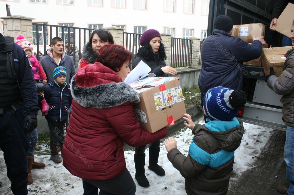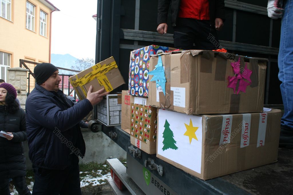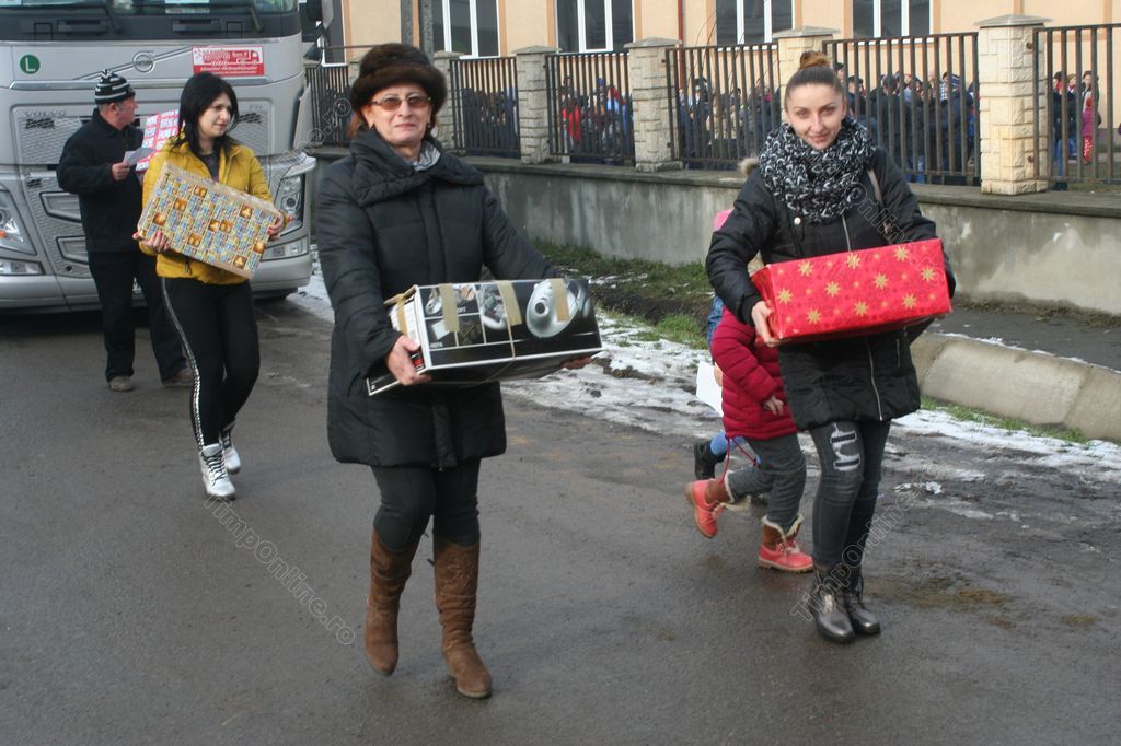 Curtea şcolii din Josenii Bârgăului s-a umplut joi cu părinţi, copii şi bunici care au aşteptat cu nerăbdare şi cu emoţie Camionul de Crăciun. Sute de daruri trimise de copii din Germania au ajuns la preşcolari şi elevi care învaţă la şcoala din comună. Au fost distribuite pe rând, pe baza unor tabele cu numele elevilor şi sub supravegherea profesorilor. Fiind destul de grele – circa 14 kg cântăreşte fiecare – părinţii au venit să le ridice şi să le transporte până acasă. Iată câteva instantanee surprinse în această localitate.