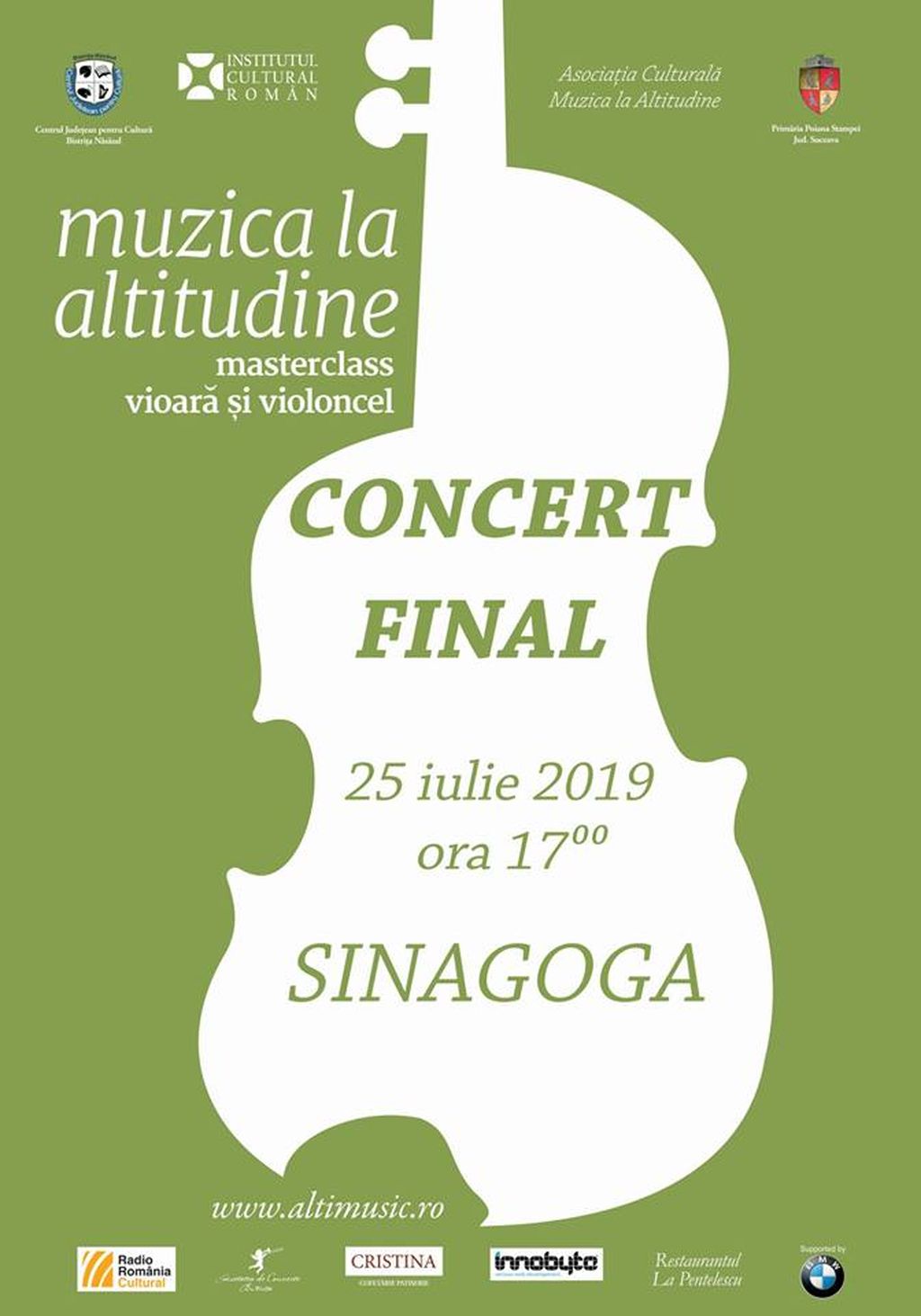 Ediția a șaptea a master class-ului ”Muzica la altitudine”, eveniment organizat de Cristina Istrate, managerul Cofetăriilor Cristina, în Bucovina, la Poiana Stampei, se încheie, joi, la Sinagoga Bistrița cu un concert care va începe la ora 17.00.