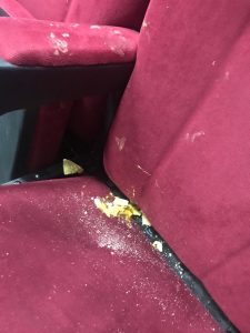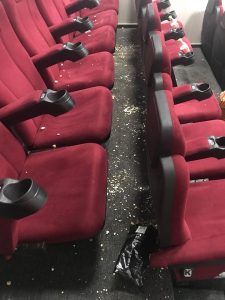 (FOTO) Un adevărat film de groază rulează în fiecare zi la sala “Adrian Pintea” de la Centrul Cultural Dacia. Acesta s-ar putea intitula “Nesimţirea”, se plâng administratorii care nu reuşesc de la o o proiecţie la alta să adune mormanele de gunoi din sală şi să cureţe scaunele de sos.
