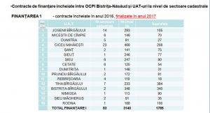 Au mai depus sectoare cadastrale în vederea recepționării și deschiderii noilor cărți funciare UAT-urile: Mărișelu (2 cu 121 imobile în lucru), Runcu Salvei (1 cu 105 imobile în perioada de afișare), Șieu (5 cu 822 imobile în perioada de afișare, pentru alte 300 de imobile fiind deschise cărțile funciare), Șieuț (2 cu 137 imobile finalizate), Zagra (5 cu 42 imobile în lucru)