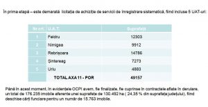 Şeful OCPI Bistriţa-Năsăud, Emil Mănăşturean, a spus, la o şedinţă de Colegiu prefectural, că acţiunea de cadastrare a început în 2013 şi se face atât cu banii autorităţilor locale, cât şi ai ONCPI sau europeni.