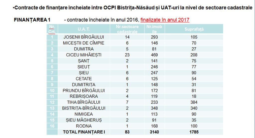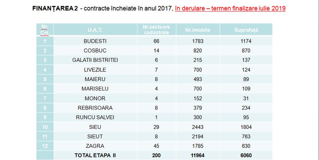 Din bugetele proprii, şi-au făcut cadastrul cinci primării, printre care şi Bistriţa, în timp ce la Romuli s-a făcut cadastrul din bugetul ANCPI.