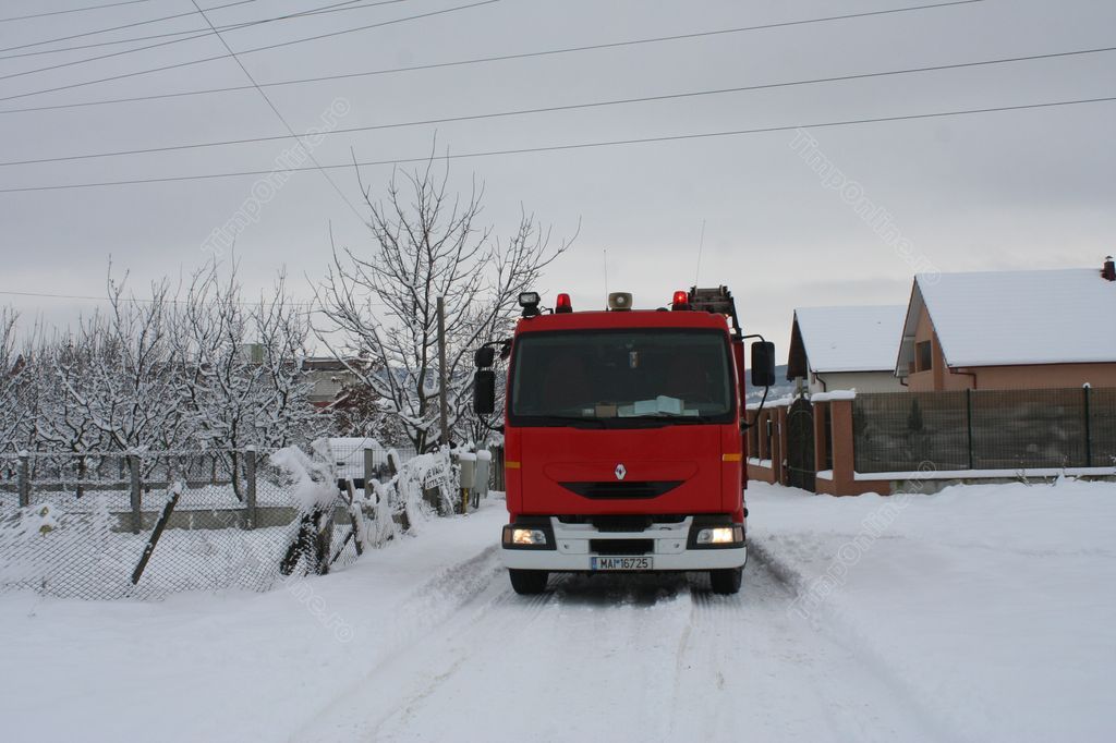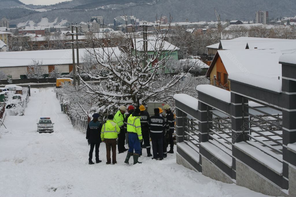 Un echipaj de la Inspectoratul pentru Situaţii de Urgenţă Bistriţa a venit la faţa locului, alertat de un proprietar, dar şoferul autoutilitarei s-a temut să intre pe stradă. Poliţiştii veniţi şi ei la locul incidentului cu un autoturism nu au putut urca mai mult de o sută de metri pentru că maşina a derapat.