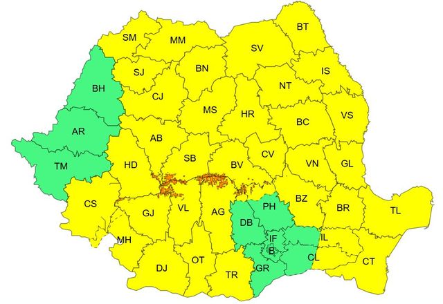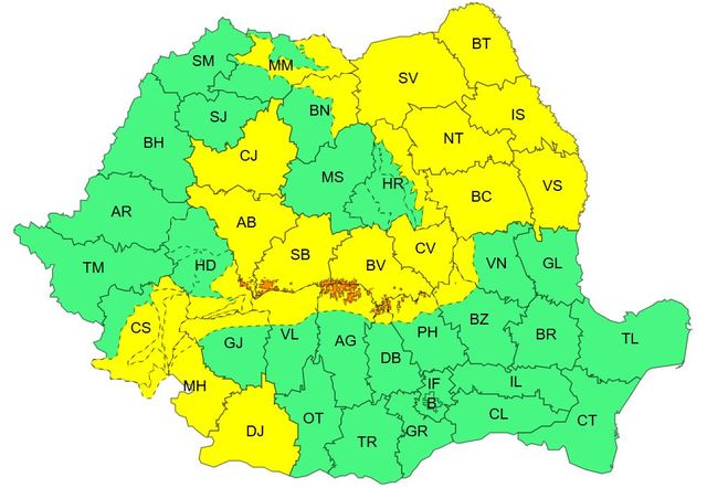 Administrația Națională de Meteorologie (ANM) a actualizat avertizările de vreme rea, valabile inclusiv pentru județul Bistrița-Năsăud în perioada următoare.