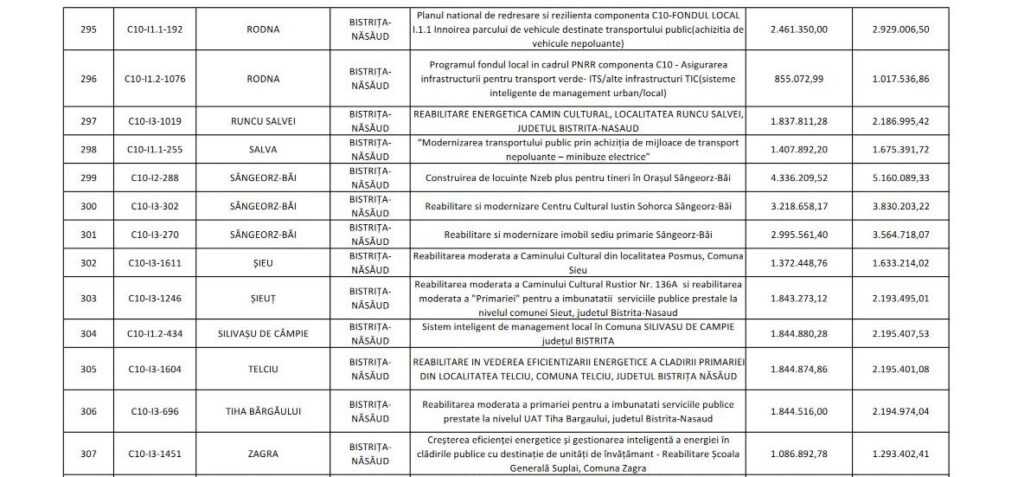 Prin Fondul Local PNRR, pentru Bistrița-Năsăud au fost aprobate următoarele noi investiții: