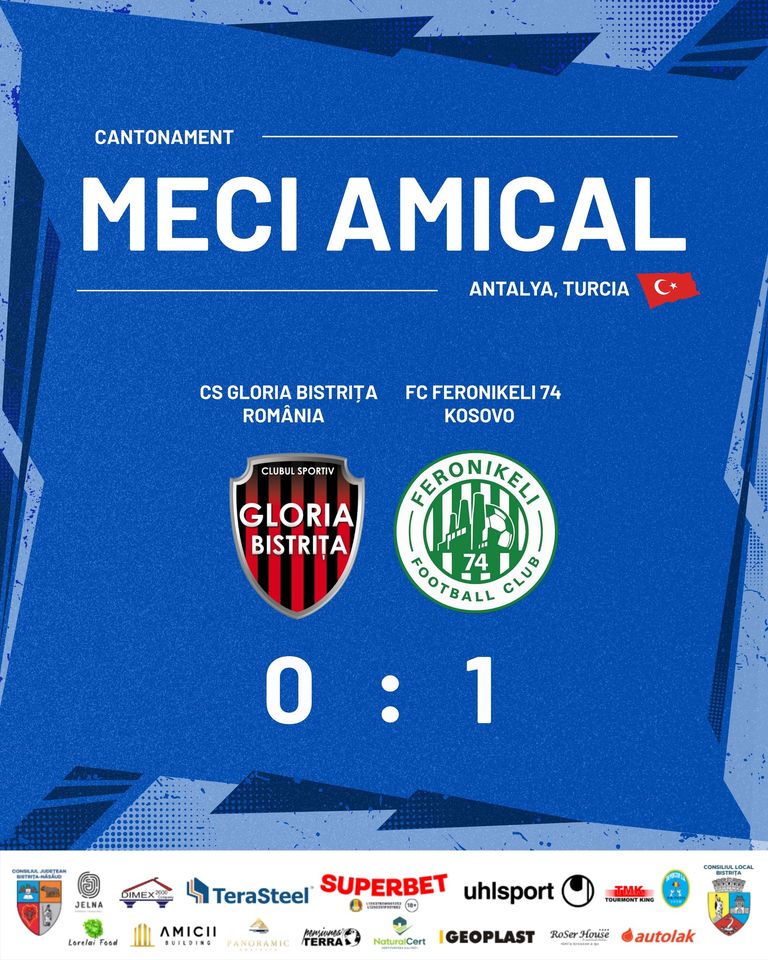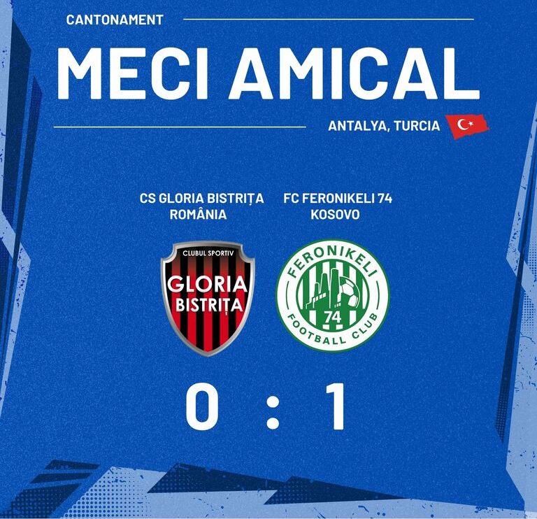 Primul joc de verificare în Turcia s-a încheiat cu victoria echipei FC Feronikeli din Kosovo, care s-a impus în fața Gloriei cu scorul de 1-0.