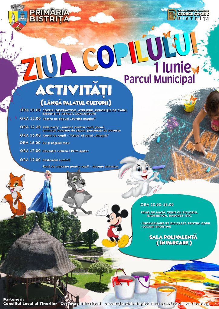 De Ziua Copilului, duminică 1 iunie, în zona Parcului Municipal din Bistrița vor avea loc activități diverse și surprize pentru cei mici.