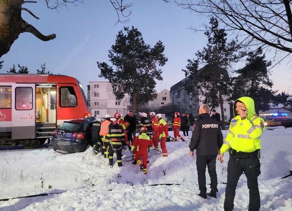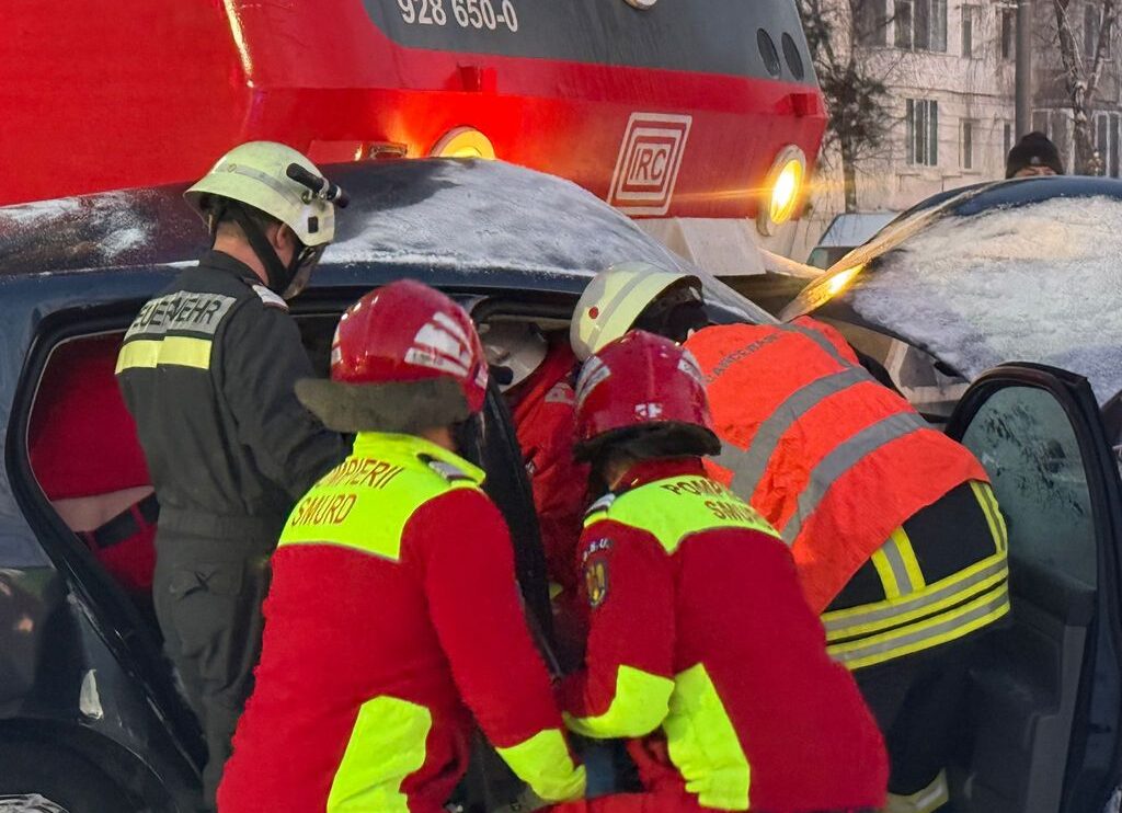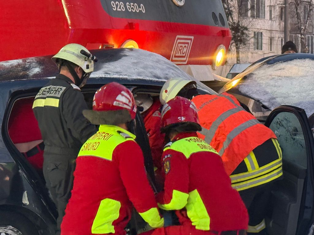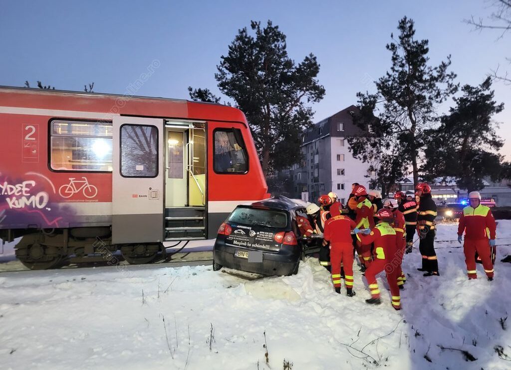 Pompierii de la Inspectoratul pentru Situații de Urgență Bistrița-Năsăud l-au scos pe bărbat din mașina prinsă sub locomotivă, iar un echipaj SMURD l-a transportat la spital în stare gravă.