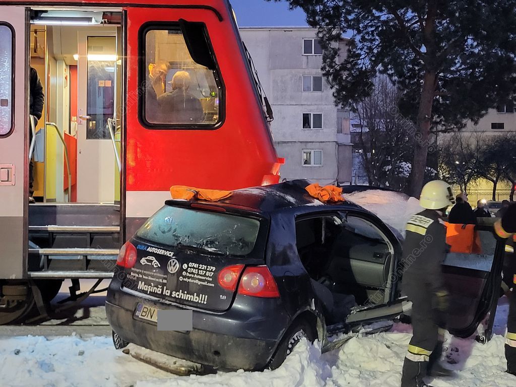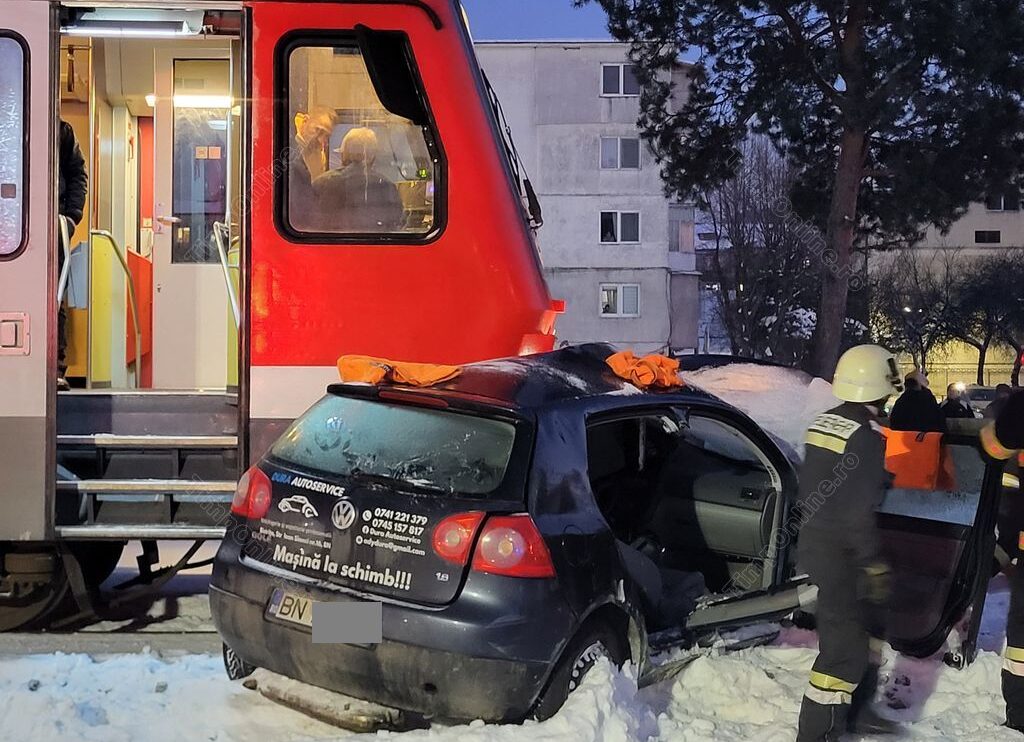 ”Polițiștii Biroului Rutier au intervenit la un accident semnalat în municipiul Bistrița, la trecerea la nivel cu calea ferată, pe strada Ioan Slavici. La locul evenimentului polițiștii au constatat faptul că un autoturism a fost accidentat de un tren de călători. În urma impactului, șoferul autoturismului, un tânăr de 25 de ani din Bistrița a fost rănit, necesitând acordarea de îngrijiri medicale de specialitate. Întrucât acesta nu a putut fi testat cu aparatul etilotest, urmează să-i fie recoltate mostre biologice. Mecanicul trenului a fost testat cu aparatul etilotest, rezultatul fiind negativ. Polițiștii Biroului Rutier din cadrul Poliției municipiului Bistrița continuă cercetările în cadrul unui dosar penal, urmând să fie stabilită cauza și împrejurările producerii evenimentului rutier”.