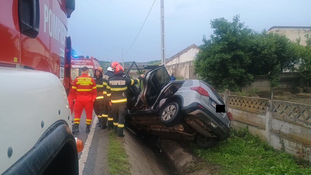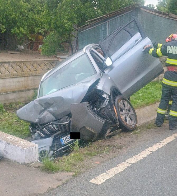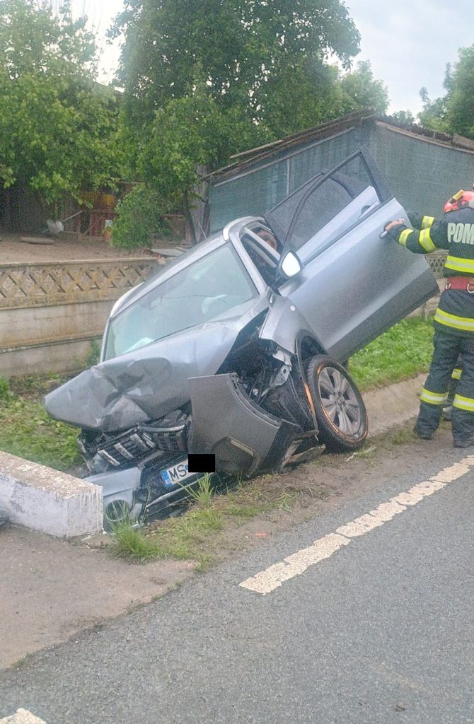 Pompierii militari au intervenit la un accident rutier produs pe raza localității Teaca, unde un autoturism a intrat într-un capăt de pod.