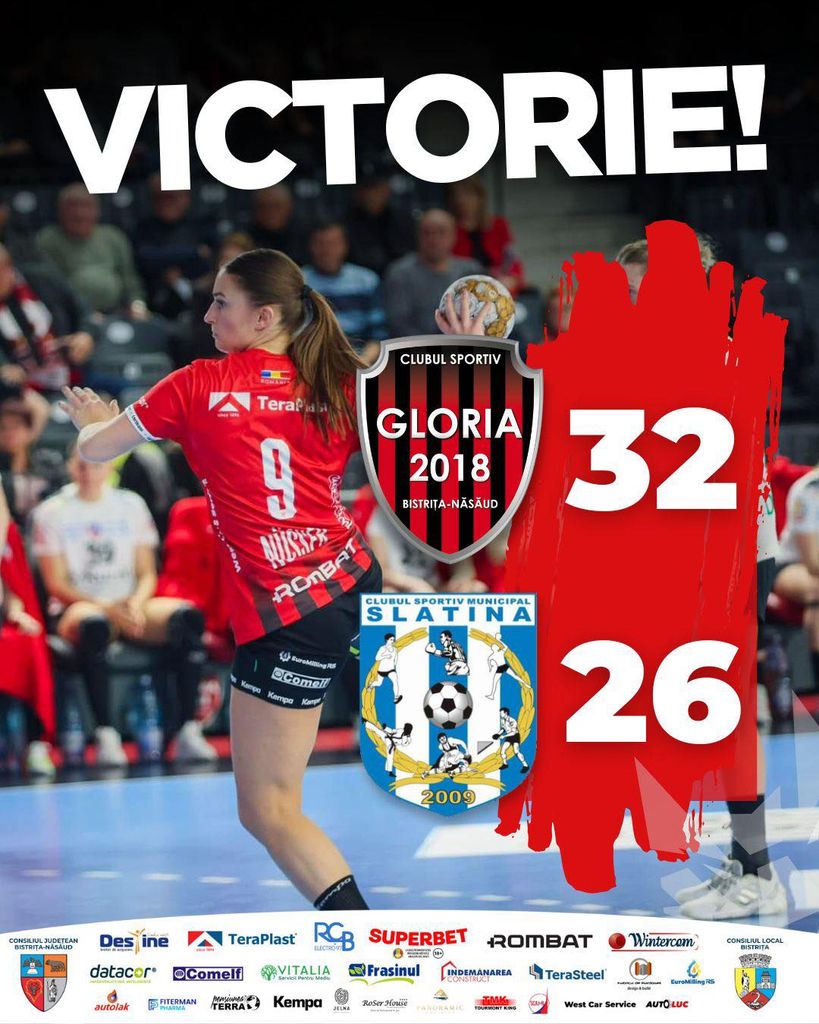La TeraPlast Arena, Gloria s-a impus în fața penultimei clasate CSM Slatina cu 32-26 (19-12).