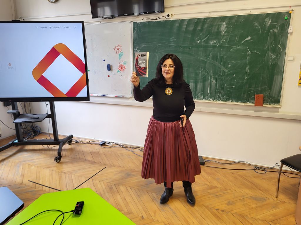 Prof. Camelia Toma le-a citit elevilor o poezie scrisă de Radu Nițescu, un poet contemporan, accesibil lor și pe rețele sociale.