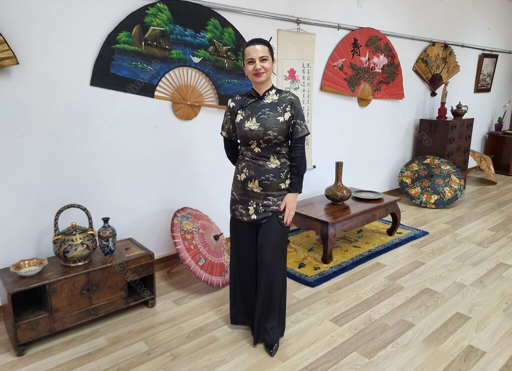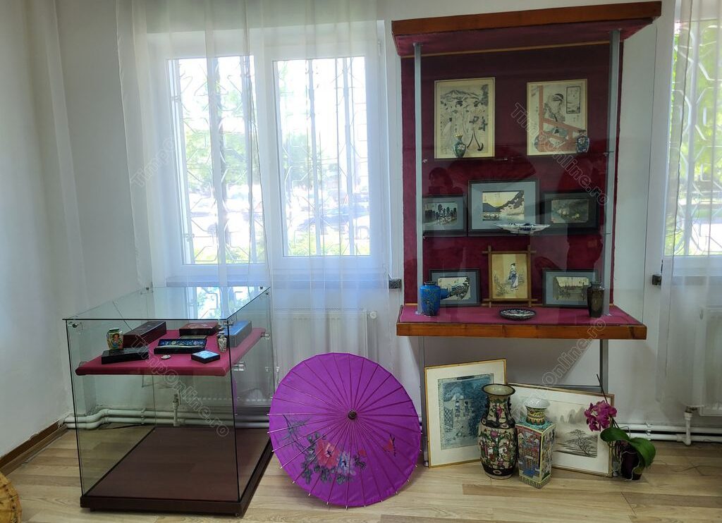 ”În România nu există foarte multe muzee care să expună obiecte din Orientul Îndepărtat și cu precădere obiecte care provin din Japonia. În expoziția pe care o deschidem astăzi, obiectele provenite din Japonia au o pondere de 60%. Sunt obiecte unele dintre ele unice, valoroase, am încercat să le grupăm în funcție de proveniență pentru că Asia, fiind cel mai mare continent, este împărțit în 13 culturi care, la rândul lor, au mai multe subculturi. Am încercat să expunem cele mai reprezentative obiecte care definesc Asia, umbrelele realizate într-o tehnică minuțuioasă, fiecare având spițe de bambus la care se lucrează câteva săptămâni, hârtia impermeabilă, lăcuită și tratată într-o soluție cu ulei. Avem evantaie, specifică nobililor, avem și obiecte de mobilier, un cufăr de transport foarte frumos, dar și numeroase stampe japoneze realizate în diferite tehnici, secolele XVII, XVIII, XIX fiind perioada lor de glorie. Mai avem și multe obiecte frumoase din ceramică și fildeș, două statuete realizate din porțelan de Guana, dar și celebra ceramică chinezească alb-negru specifică dinastiei Ming”, a spus dr. Cornelia Vlașin.