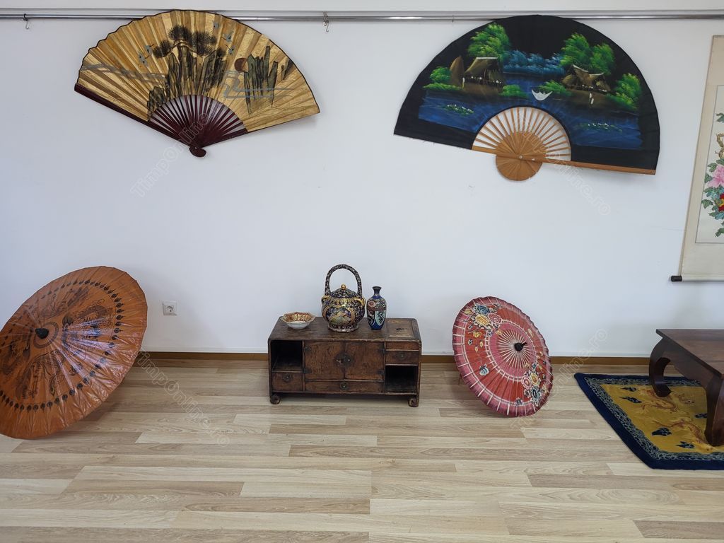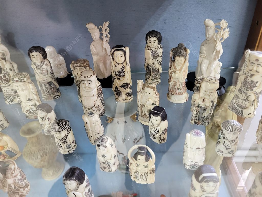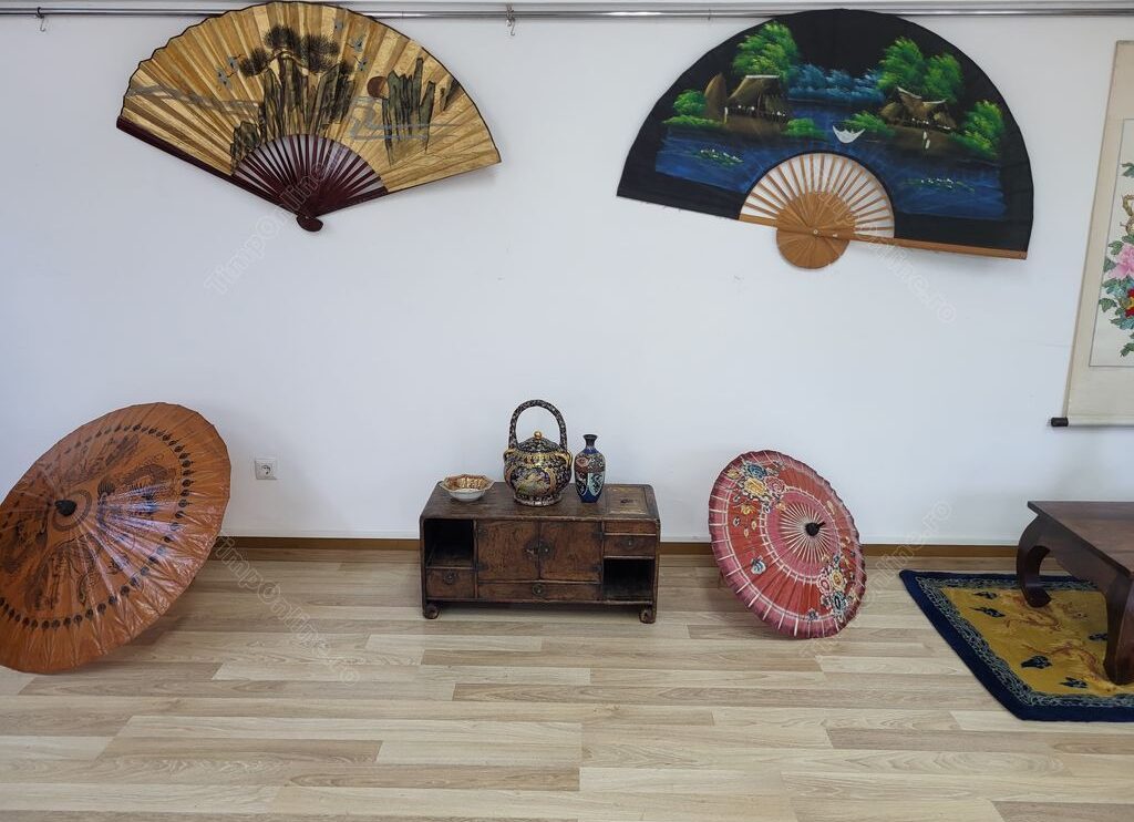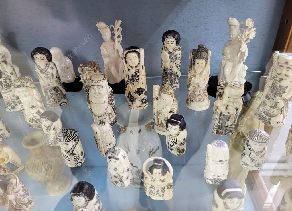 ”În expoziție puteți vedea obiecte din India, Indonezia, China și Japonia pe care le-am cumpărat de la cei care aduc obiecte de artă din străinătate. Sunt expuse statuete din fildeș din Japonia, făcute între 1900 și 1920. Familiile bogate din aceste țări dețineau în casă o figurină bărbat și alta femeie. Mai sunt și aceste obiecte protejate de sticlă în care sunt reprezentați urși panda, miniaturi care se fac în plută, foarte greu de realizat. Am adus și picturi realizate de niște pictori celebri japonezi, sunt bidimensionale. În expoziție mai puteți admira și umbrele din bambus, trestie și hârtie care sunt foarte greu de realizat, dar și evantaiele pictate cu o culoare unică, iar apoi decorate cu ce se vede”, ne-a spus Florian Coșoiu.