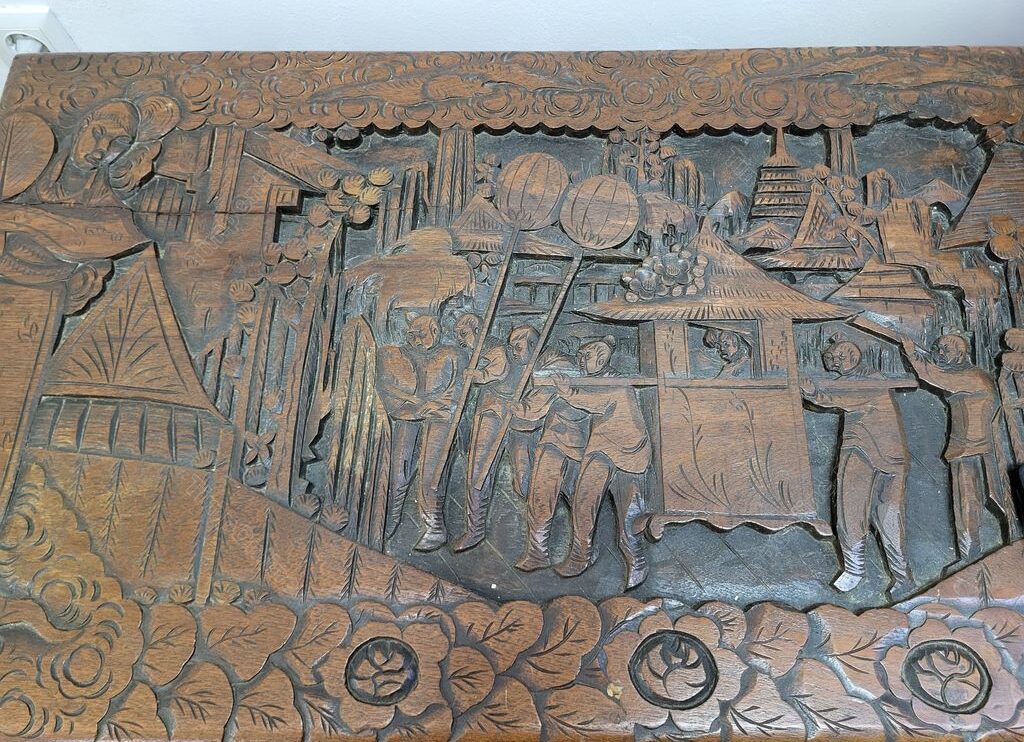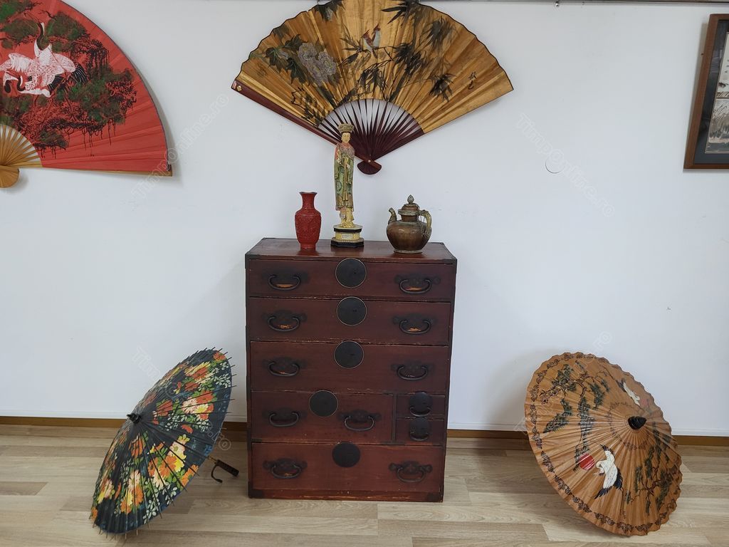 O piesă foarte valoroasă expusă este un obiect de mobilier, păstrat foarte bine, cu buzunare secrete, făcut din lemn de pin și cireș, cu feronerie: ”Fiecare sertar are o cheiță cu care se închide. Cel expus aici provine de la consulul Japoniei în Geneva. Este adus din Elveția. O piesă de acest tip la o licitație poate ajunge la 10.000 USD”, a mai spus Florian Coșoiu.
