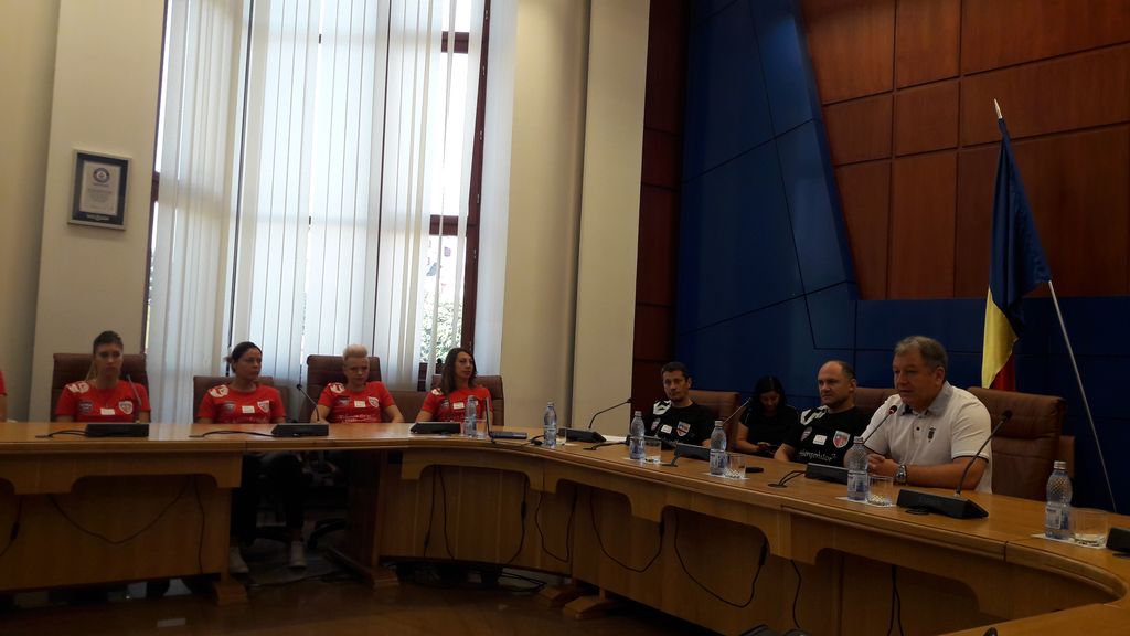 (FOTO-VIDEO) ”Plecăm la un nou drum, proiectul clubului CS Gloria 2018 Bistrița-Năsăud, nou înființat în subordinea Consiliului Județean, este unul pe termen mediu și lung, este al tuturor cetățenilor județului. Noi vom asigura cele mai bune condiții pentru performanță. Relația noastră cu echipa va fi directă prin viitorul președinte al clubului, vom vedea cine va fi. CJ nu decide cine joacă și nu face transferuri, deciziile finanțatorilor vor fi atunci când trebuie luate anumite măsuri în urma unor analize serioase. Sunt foarte mulțumit de ceea ce s-a întâmplat cu această echipă. Mă bucur că o jucătoare ca Valentina Ardean Elisei a ales să vină la Bistrița. Cred că avem condiții propice pentru a face performanță. Din câte îl cunosc pe antrenorul Horațiu Pașca, are un obiectiv asumat. Nu eu stabilesc targetul echipei”, a declarat președintele Consiliului Județean Bistrița-Năsăud, Radu Moldovan, într-o conferință de presă comună cu stafful tehnic și jucătoarele echipei de handbal.