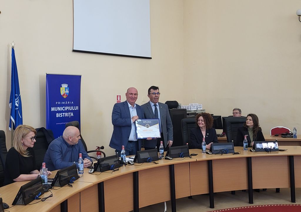 Dorin Rus, președintele în exercițiu al Clubului Rotary Bistrița Nosa, a oferit trei diplome de mulțumire celor care au inițiat, susținut și derulat acest proiect: primarului Gabriel Lazany, Spitalului Clinic Județean de Urgență și companiei Leoni.