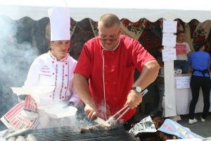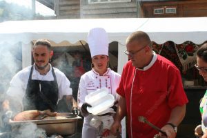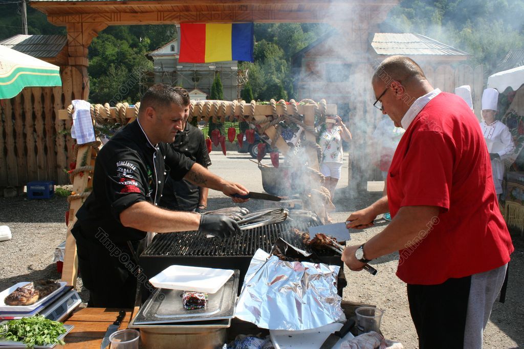 Chef Vasile Hotca a pregătit berbecuţ la proţap cu aromă de păstrăv afumat, dar şi purceluş în lapte aromatizat şi prăjit pe gril: “Vin aici pentru Nina, din prietenie pentru ea, dar şi pentru că zona este superbă şi-mi place mult să gătesc aici, la Romuli. Uitaţi-vă ce peisaje, ce oameni frumoşi!”.