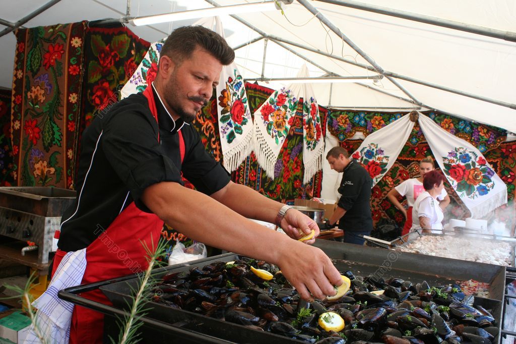 Chef Liviu Balint a gătit pentru cei prezenţi midii într-un sos picant, cu praz şi chorizzo.