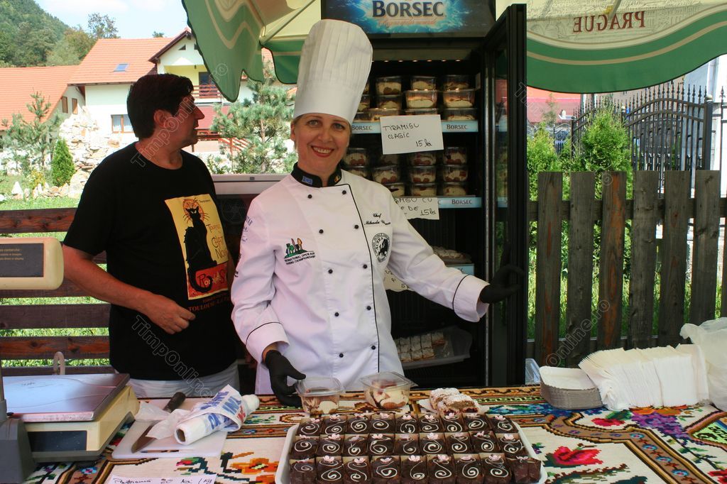 “Am foarte multe deserturi pe bază de caise, piersici, fructe de pădure. Am făcut tiramisu în două variante, clasic şi cu fructe pentru copii, dar în nota mea personală fiindcă unul are un crocant de ciocolată, iar celălalt un sos de zmeură şi fructe de pădure deosebit, am făcut tarte cu mure că suntem la munte, mini checuri cu ciocolată şi vişine, mini checuri cu lămâie şi merişoare. Am făcut şi brioşe. Nina ne-a provocat să gătim păstrăvul ei fiecare în varianta noastră. Eu fiind cofetar, voi face cupe de ciocolată cu un mousse de păstrăv afumat pe care îl voi pregăti în cea de-a dopua zi de festival, adică duminică. Sper că va ieşi foarte bine şi lumea va aprecia”, a spus ea.