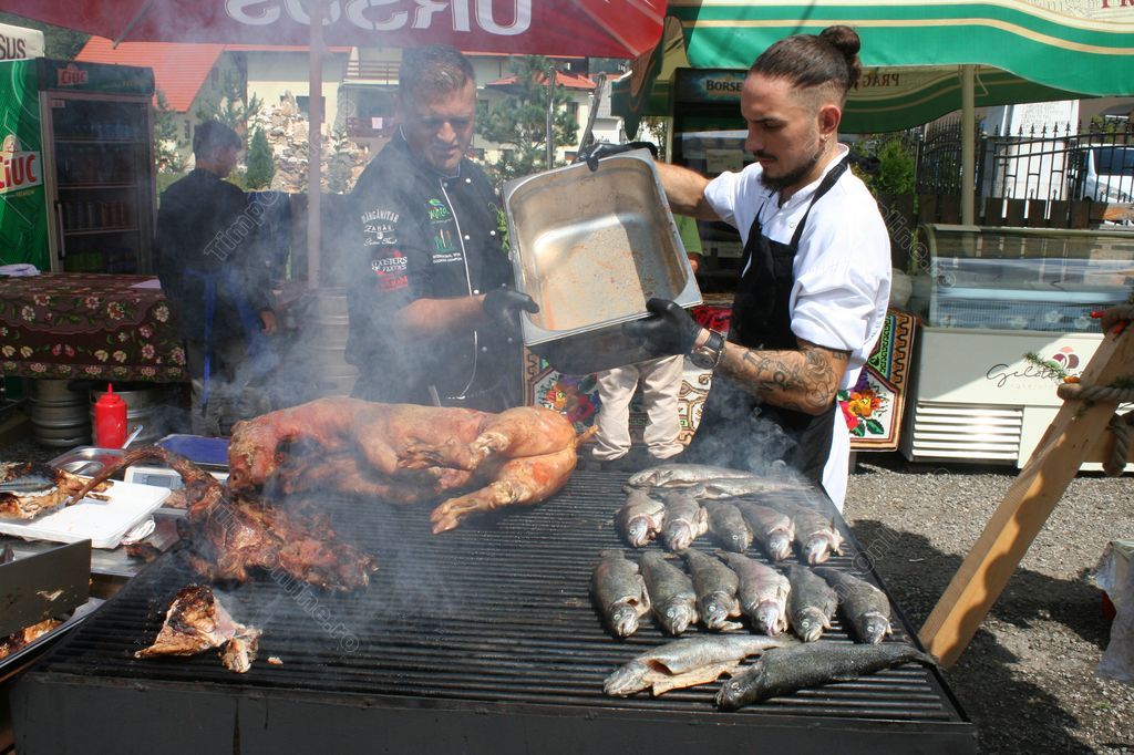 “Ne bucurăm că lumea vine, îi place ce gătim noi. Avem multe sortimente de păstrăv, dar cum nu toată lumea vrea să mănânce doar păstrăv, m-am gândit să facem şi berbucuţ la proţap, purceluş în lapte la grătar, două tipuri de scoici şi hamsii. Am mai făcut tochitură de porc ardelenesc, gulaş, că suntem în Ardeal. Sunt toate preparatele pe care le-am făcut eu prin ţară, prin oraşele prin care am fost alături de chef Cătălin Scărlătescu la Festivalul Gustului Românesc. Este cea mai mare mulţumire a mea când văd că avem clienţi din toate părţile ţării, inclusiv străini, polonezi şi germani, care sunt foarte încântaţi de preparatele noastre. Noi ne dorim să existe şi alte ediţii ale festivalului. Avem o echipă frumoasă la restaurant, iar chefii care au venit la festival de asemenea sunt foarte dedicaţi. Le mulţumesc că au acceptat invitaţia mea să facă reţetele mele din Romuli”, a spus chef Nina Rus, decisă să înregistreze la OSIM denumirea Festivalul Păstrăvului Rin şi să organizeze şi alte ediţii.