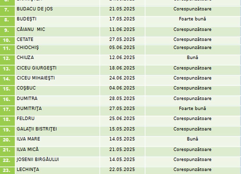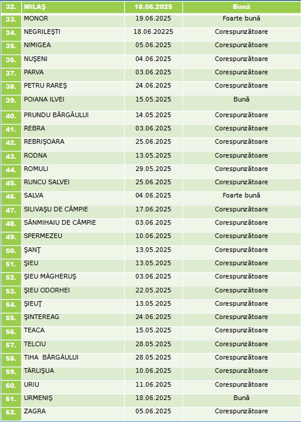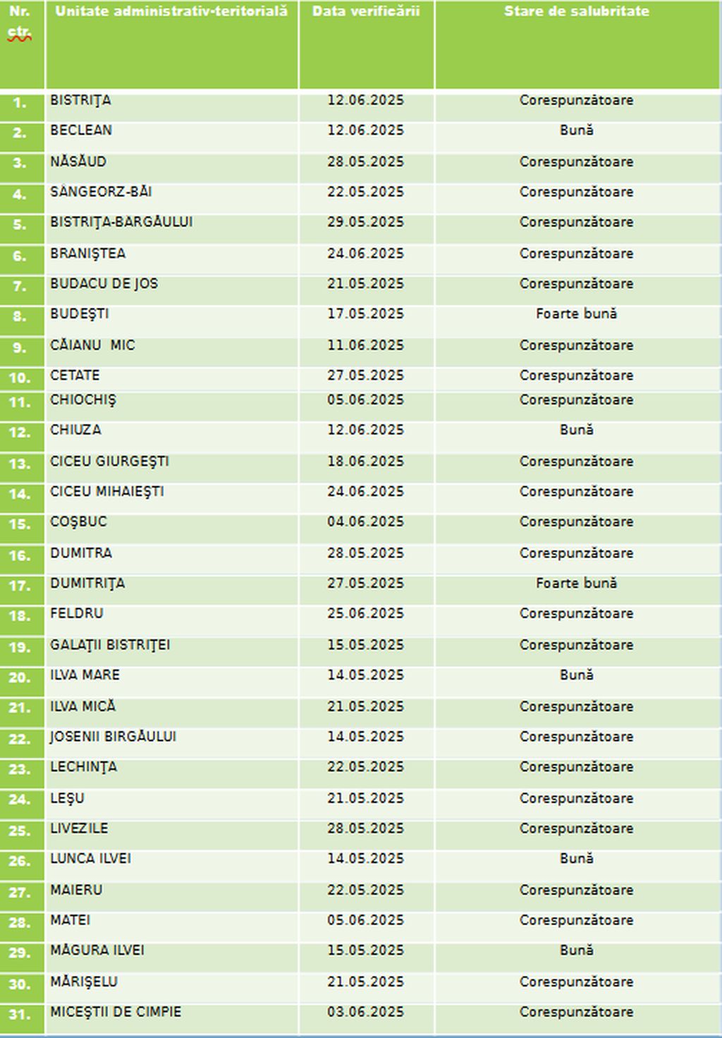 Doar patru comune din județul Bistrița-Năsăud se pot lăuda că și-au făcut treaba în ce privește curățenia, acestea primind calificativul ”foarte bine” din partea unei comisii mixte constituită prin ordin al prefectului. Aceasta a făcut verificări în toate unitățile administrativ-teritoriale în perioada 5 mai – 27 iunie 2025.