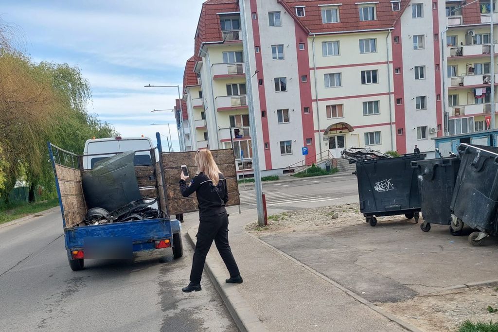 Unul dintre mesaje ne semnala: ”[…] Romii cu fier vechi cu nr. de Sălaj. Sper să se rezolve această situație”. Am verificat. Am mers în teren. Am supravegheat zonele indicate. Ieri dimineață, în cartierul Subcetate, i-am surprins în flagrant în timp ce abandonau deșeuri metalice în pubelele de la locuințele ANL. Au fost identificate două persoane cu domiciliul Șimleu Silvaniei. Echipajul a intervenit imediat: 1.000 lei sancțiune contravențională și obligația de a curăța zona pe loc.