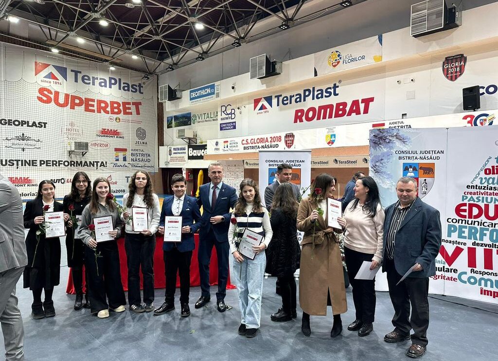La Sala Polivalentă din Bistrița a avut loc festivitatea de acordare a stimulentelor financiare din partea Consiliului Județean pentru elevii care are au obținut rezultate deosebite la olimpiadele școlare în acest an și dascălii care i-au pregătit.