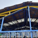 Prima oară ( prin ‘75-76’, nu mai rețin exact anul ) , idioții au fixat acoperișul pe stâlpii rotunzi , doar cu coliere . Mesele inca nu erau puse (ca in pozele de azi ) . A venit iarna , a nins mult intr-o noapte, apoi ninsoarea s-a transformat in ploaie . Colierele n-au putut susține greutatea asa ca dimineata pe la 5 întreg acoperișul s-a prăbușit peste cateva Dacii parcate de vecini “la scuteala” .